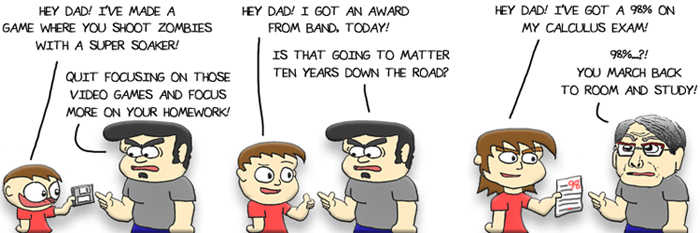 I don't know. Maybe it's something I made up. Maybe I self-selected a cohort messed up for the same reasons I am. In any case, I never spent much time with him. Any time we did manage to spend together was often tense and felt like stepping on egg shells. It seemed like we were different in every conceivable way, and nothing I did ever seemed to make him proud. Whenever he berated me over my interests and hobbies and how they were all a waste of time, I usually just ignored him and not bother sticking up for myself.